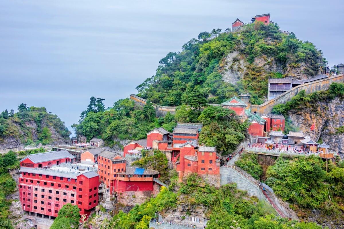 武当山堪称是中国知名度最高的名山之一,论景色,虽不惊艳,但也有独特的地方,山体地貌四周低矮而中间拔地而起,在金顶形成了悬崖峭壁的独特景观。